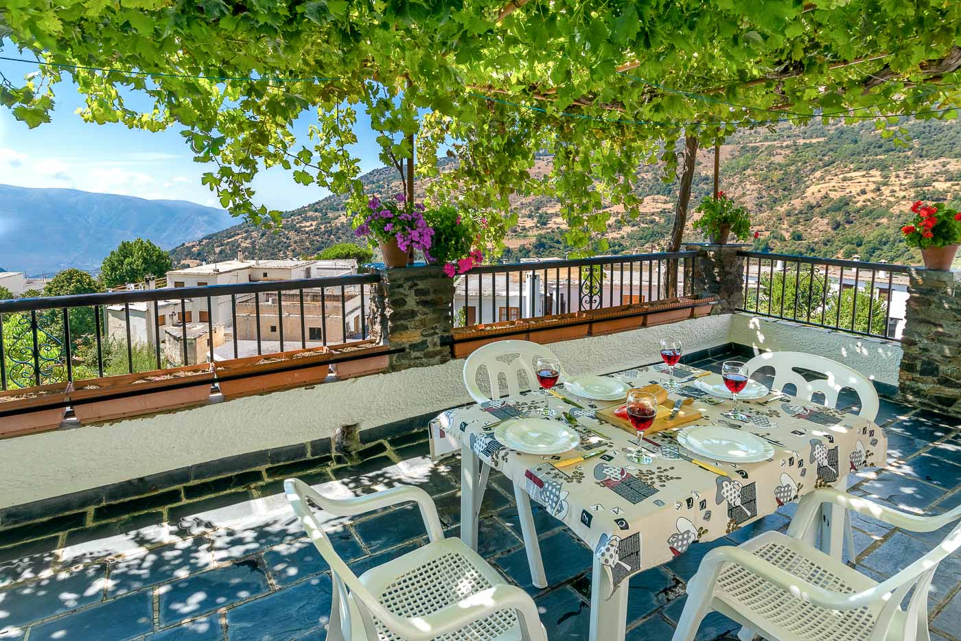 The main feature of this village apartment was the beautiful, vine-framed view to the mountains. There was quite a lot of grapevine when we arrived, but the owner allowed us to prune the branches a little to make a great view even better.